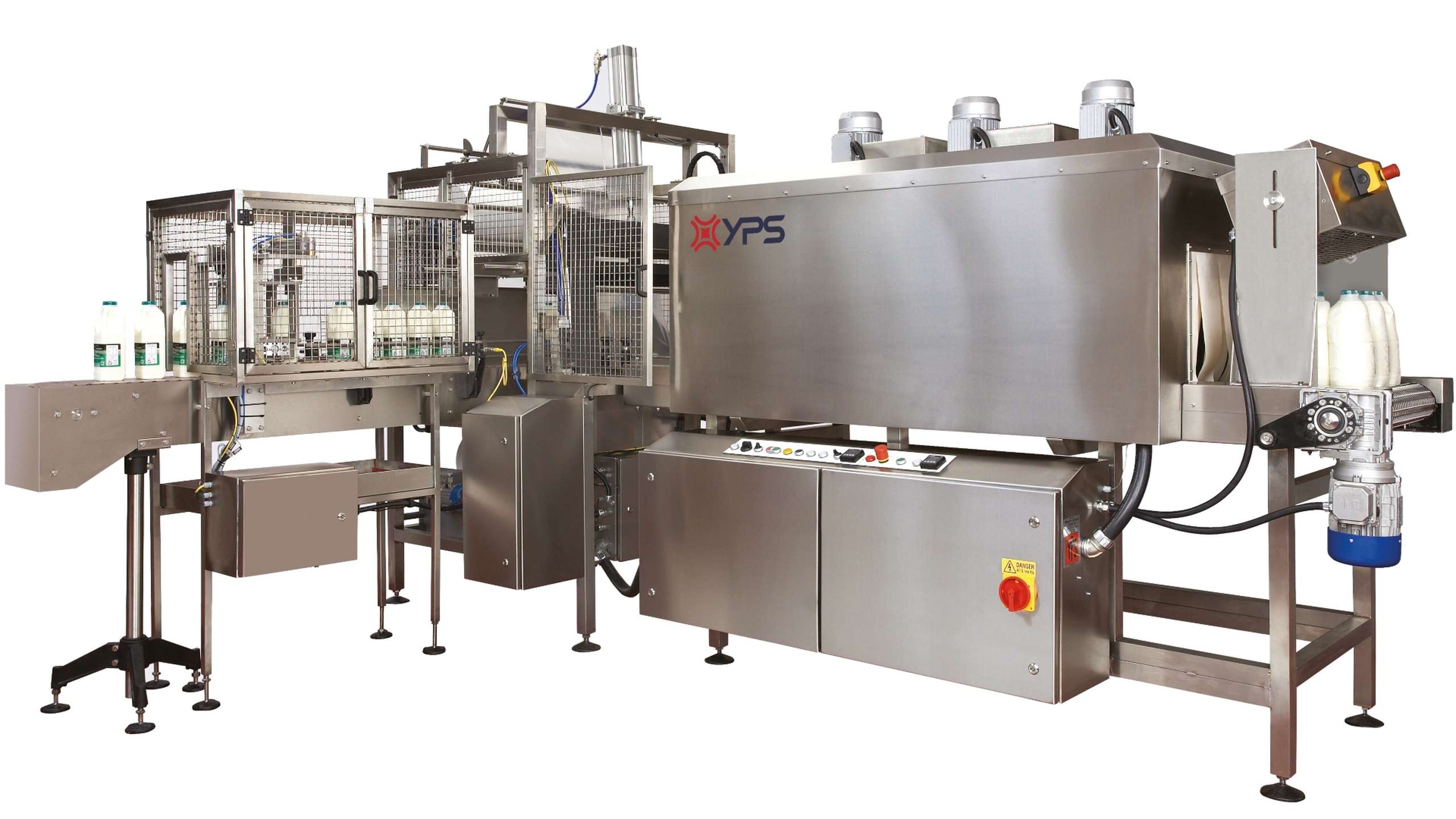 Before working with YPS, Chew Valley Dairy was manually packing milk bottles into crates. We supplied the dairy with a stainless steel wrapping line consisting of a semi-automatic sleeve sealer and shrink tunnel that wrapped two-litre bottles of milk in 2×3 collations. Later, we provided the company with the SS140 fully automatic milk machine. In full stainless steel, with low voltage electrics rated to IP66, this genius line was fast enough to feed from the filler directly and designed with a harsh wet environment in mind.