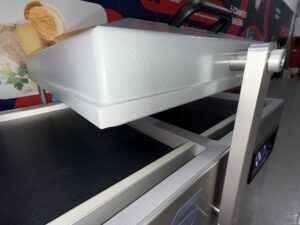 • Soft-air device. This controls the re-introduction of air into the chamber at the end of the sealing cycle. It prevents sharp products from penetrating the packaging – an issue that can occur with systems that allow a fast return to a non-vacuum atmosphere.